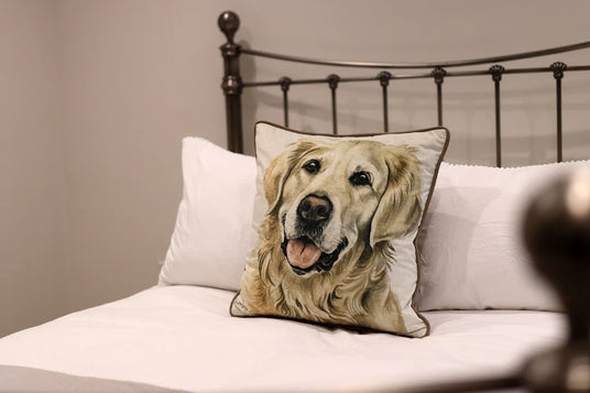 Your chosen Christine Varley dog portrait is printed onto the front of the cushion.